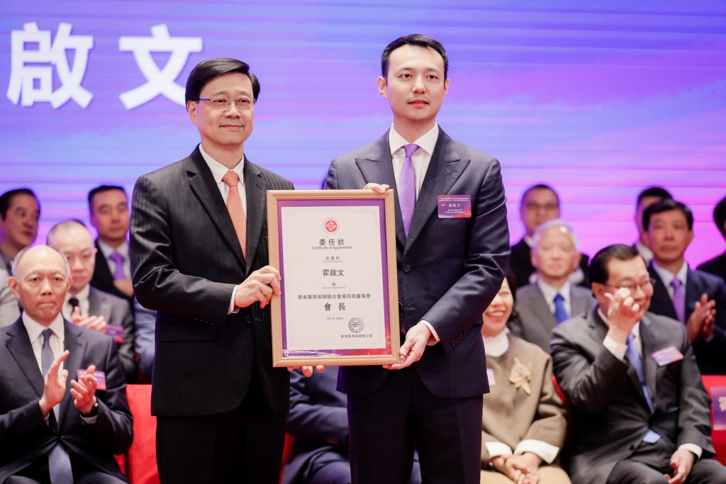 霍啟文在致辭中感謝特區政府、番禺區委區政府及社會各界人士蒞臨本次活動,他表示,新一屆香港番禺鄉親聯合會將秉持愛國愛港愛鄉的宗旨,堅定支持特區政府依法施政,積極推動鄉親會員之間聯繫,加強與其他團體的合作,擴大影響力、提升凝聚力,為推動香港更好融入國家發展大局,促進番港兩地交流合作作出新的貢獻!