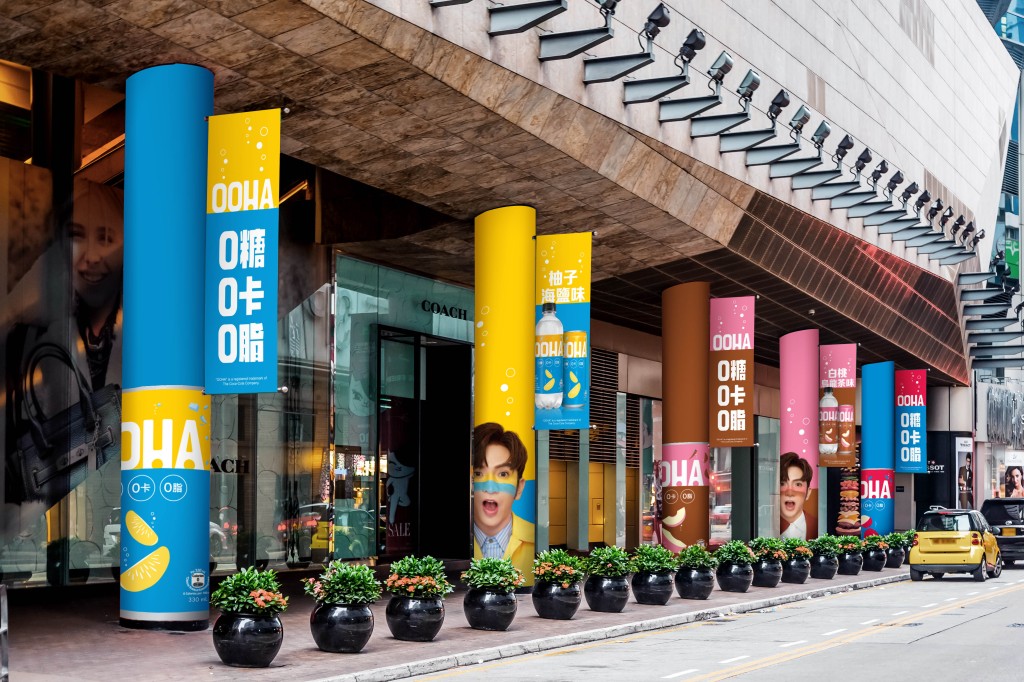 順帶一提,朗豪坊砵蘭街門外的十條高柱有新汽水品牌OOHA的品牌大使Anson Lo盧瀚霆一系列宣傳硬照及打卡位。即日起至3月31日,這十條高柱分別展示超過五米高、色彩奪目的宣傳照,無論近距離接觸或遠距離觀賞,一樣可以見到Anson Lo活潑生鬼的表情,亦是全唯一一個打卡點可以一次過集齊7款廣告造型的地方,共有7個不同的站立姿勢及2大頭照,可以一次過與不同姿勢、表情及服飾的Anson Lo合照。朗豪坊入口更有一條高達5米的Anson跟你Say OOHA,更有全港唯一一個的1:1 Anson Lo,方便大家站在他旁邊來幀甜蜜合照。另由即日起至3月31日,LP CLUB會員可登入朗豪坊手機應用程式,憑1,000分換領OOHA 三款口味汽水迷你罐裝6罐裝,包括白桃烏龍茶味、柚子海鹽味及荔枝乳酸味。
