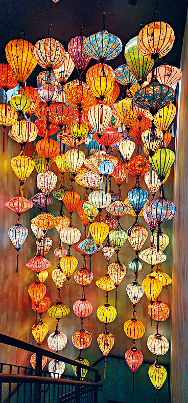 剛於8月在圓方演薈廣場開業的Bistro Hoi An是第二分店,總店於2022年底在屯門黃金海岸商場首度登場。Hoi An是越南語,中文名字是會安,是位於越南中部一個歷史悠久的貿易港口,在1999年被聯合國列為世界文化遺產。該古城以其保存完好的傳統建築、以及融合中、日、法式風格的街區而聞名,晚上點亮燈籠的景色尤為迷人。新店與總店一樣,賣點是融匯古城的歷史文化及越南的地道美食色彩,是以裝潢與氛圍均洋溢古城的氣息。佔地逾五千呎並樓高兩層的新店掛滿五彩繽紛的燈籠(見圖),營造出古色古香的醉人美景,是食客打卡熱點。