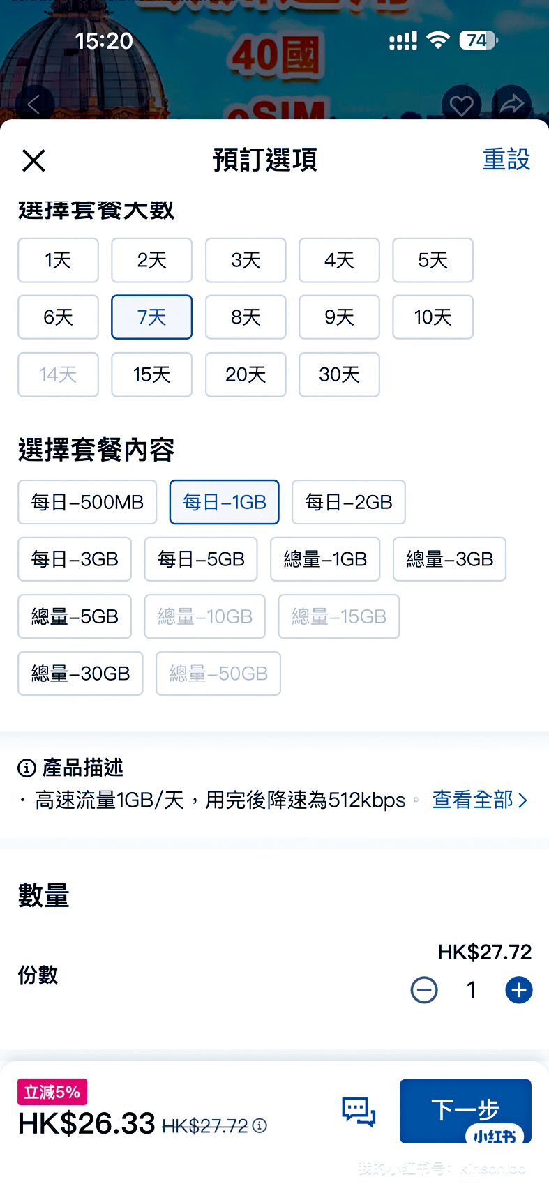 這星期我在德國出差,出發前我打算買一張歐洲通用的eSIM。看了好幾間比較一番後,選了TRIP.COM這個「歐洲通用 4G/5G eSIM」(見圖)。套餐天數選七天,每天高速流量1GB(超過後限速),歐洲多國通行,價格才港幣26.33元,平均每天不到4元港幣,便宜到發笑。