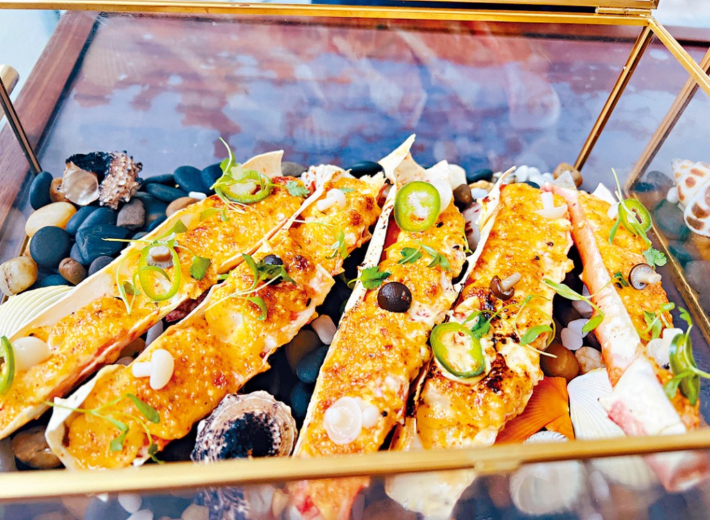 阿拉斯加帝王蟹腳啖啖肉,放在透明大珠寶盒上桌,儀式感和味道滿分;蒲燒鰻魚壽司、海鰻天婦羅,灑上鵝肝末,配金橘蛋黃醬,小巧,脆、鰻魚香、鵝肝誘惑、壽司飯軟糯,口感多層次;48小時慢燉和牛肋肉,入口即溶,伴碟的鵪鶉蛋也成寵兒;味噌黑鱈魚,蘸柚子清酒泡沫,清新去魚脂之膩;泡菜炒飯,佐以脆炸蒜片和乾蔥,微辣醒胃。甜品:Tiramisu香濃咖啡脆片,夾意大利芝士,配茶香雪糕,淡甜,無負擔;烤蘋果春卷,玉桂忌廉芝士+焦糖蘋果+雲呢拿意式雪糕,切勿錯過。