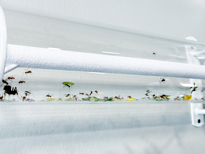 雖然蟻呢種昆蟲可能令大家聯想到污糟邋遢,但其實咖啡店地方非常乾淨整潔,內裏有超過三十個唔同品種嘅蟻,亦都可以觀察到蟻群日常點樣生活,事關店內設有好多畀蟻走動嘅透明長管,可以望住佢哋喺管內每日好忙碌咁行來行去搬樹葉,都幾有趣。除咗畀大家觀賞蟻之外,原來亦都有特別品種嘅蟻出售,一個蟻竇賣1萬多銖起,最貴嘅十幾廿萬都有,畀有興趣人士買返屋企繼續養。同一般寵物咖啡店唔同,店內嘅蟻都只供觀賞,唔可以接觸或者餵飼。喺泰國嚟講,如此主題嘅咖啡店應該都只此一間,尤其老闆對於蟻嘅認知非常豐富,每日都會同志同道合嘅客人傾談交流,等大家知道蟻係幾咁勤力同生命力強。正所謂「螻蟻尚且偷生」,當你人生有唔如意嘅時候都不妨來一趟,睇睇蟻都識得努力求存,更何況我哋人類呢。