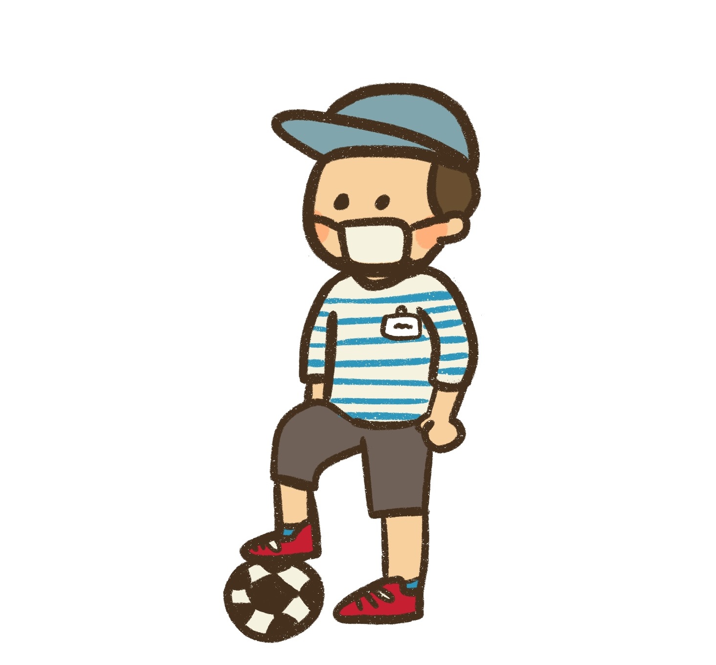 踩及輕輕踢球。讓孩子體驗左右腳站立及發力的感覺。不可踩扁足球。如站立不穩,家長可協助在旁扶持。