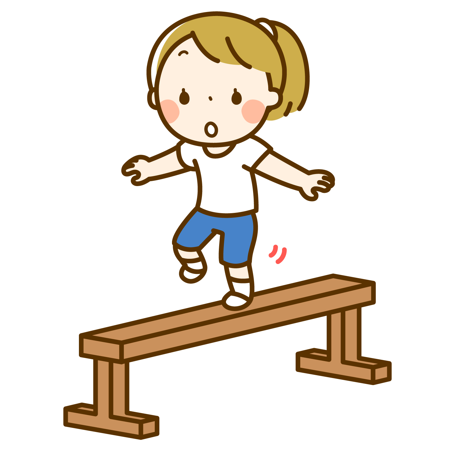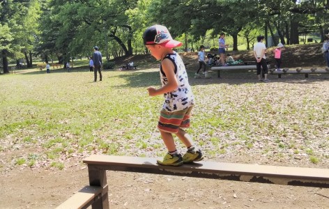 使用公園內的平衡木,初段可雙手放開用以平衡前行,習慣後可叉腰或垂下雙手。來回兩次。