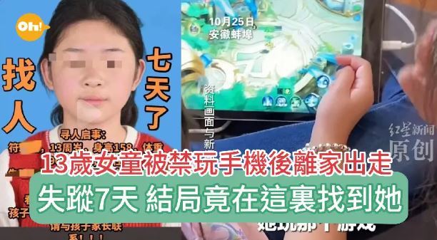 13歲女童被禁玩手機後離家出走 失蹤7天 警方全城尋人不果 結局竟在這裏找到她