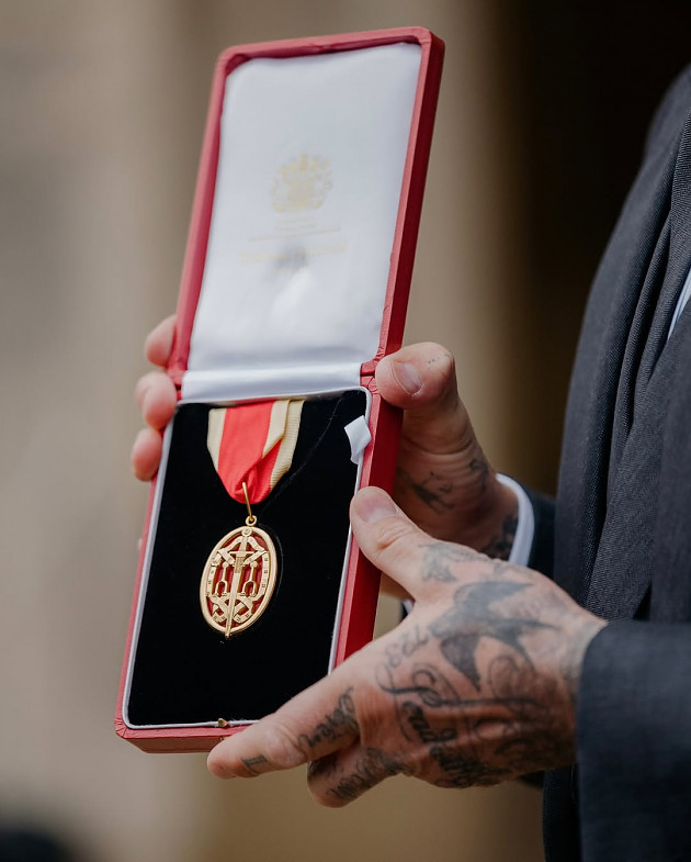 英國國王查理斯三世於溫莎城堡向佢授予爵位封為爵士,以表彰佢對體育和慈善事業嘅貢獻~~