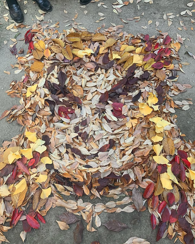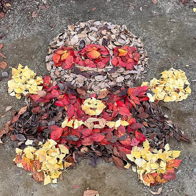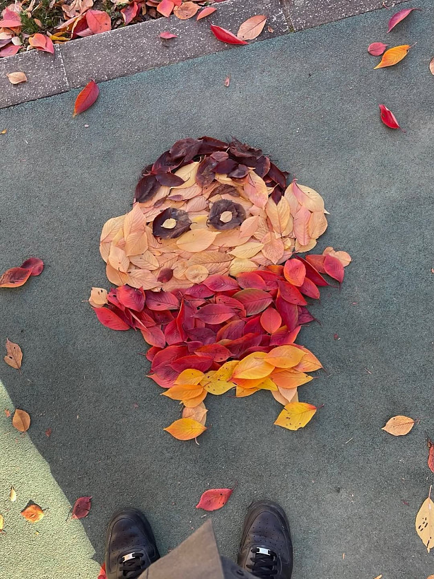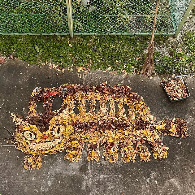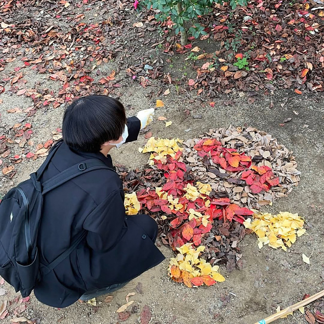日本奈良高中美術老師はまー @hamacream 大約十年前問自己:「有冇一啲免費活動可以激發學生產生對藝術嘅興趣?」其後諗到:秋日飄落絢麗落葉。於是,佢拎起掃把,開始創作。