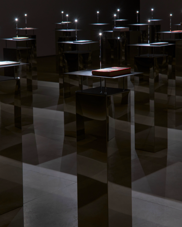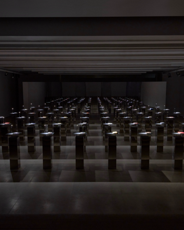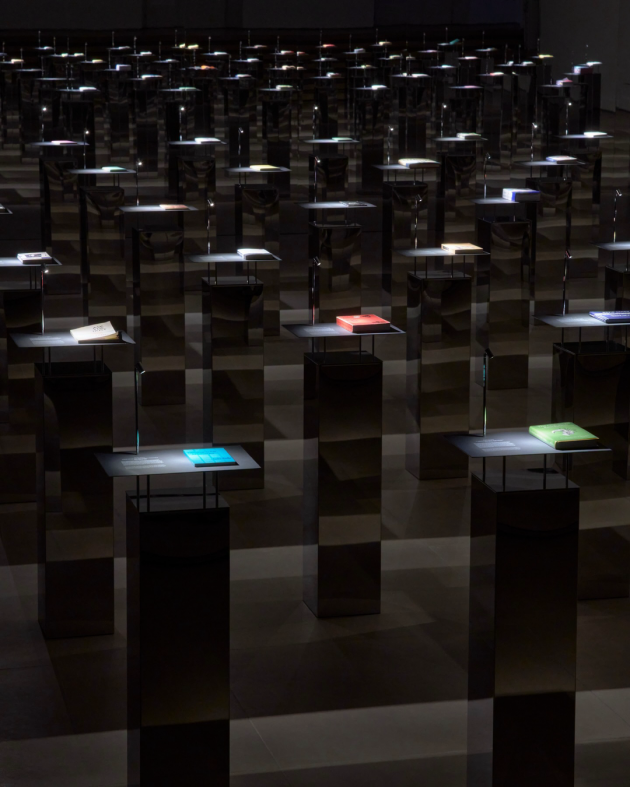 60本陪伴人生不同時刻個人讀物,60種視角,其中包括Italo Calvino《II Barone Rampante》、Goliarda Sapienza《Ancestrale》、Giorgio Manganelli《Centuria》等,設置於由米蘭建築事務所studiooutte設計同一靜謐沉思展示空間,多個鉻合金講台一字排開,並被閱讀燈溫暖地照耀,倒影被鏡面牆反射,觀者可以放慢腳步,隨心所欲閱讀、觸摸、品鑑。展覽每小時只有60個名額,每位參觀者登記後會獲邀進入圖書館,並獲贈一對白手套,滿滿儀式感珍而重之翻閱細讀書中自有另一角度 / 吉光片羽 / 情感 / 記憶 / 世界。