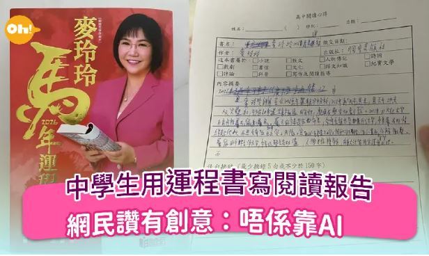 中學生用麥玲玲 運程書 寫閱讀報告 網民讚有創意:唔係靠AI