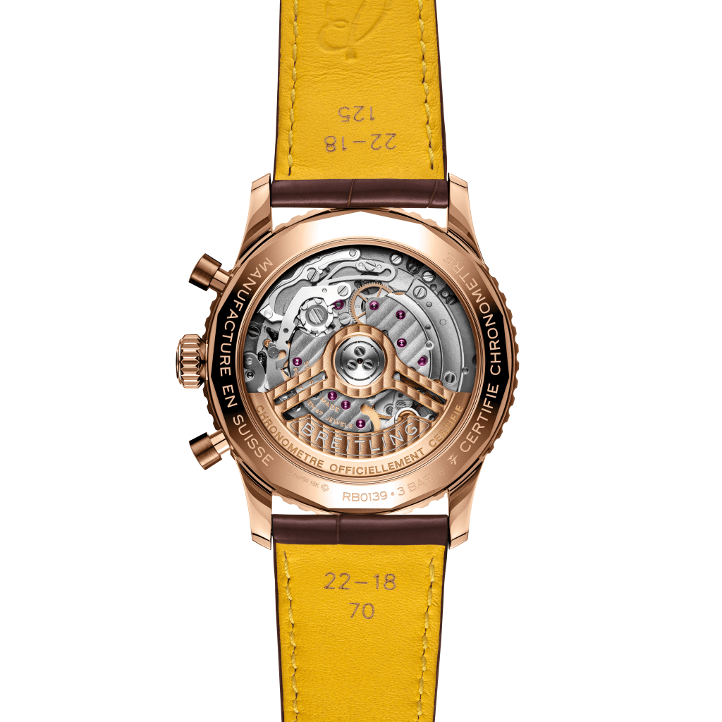 送禮當然要有心思及夠特別。Breitling很清楚大家想要甚麼, 屬於黃金限時膠囊系列、全新登場的Navitimer B01 Chronograph 41,首次以紅金錶殼搭配棕色錶盤,並以白色的計時盤和飛行滑尺令腕錶層次更豐富、色調對比更強烈,再加上棕色鱷魚皮帶,散發濃濃的冬日氣息。此款腕錶僅限專門店和官網發售。