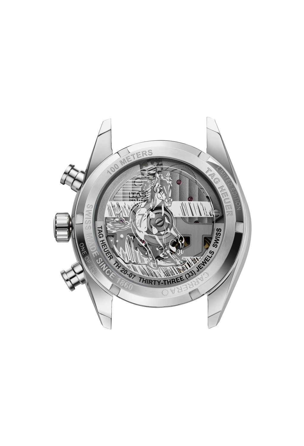 為呼應今年火馬年,Tag Heuer以紅色點綴計時秒針、30分鐘累計盤和日期視窗,而錶盤、指針和時刻則配上香檳金色,兩種顏色的強烈對比,配上經典Dato格局,效果優雅而不落俗套。品牌還花上心思將日期的「7」換上簡體「马」字,代表馬是排名第七的生肖,而錶底則印有充滿力量的駿馬圖案。