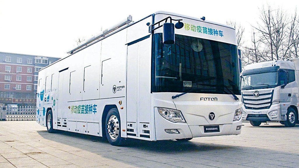 (星島日報報道)內地首款流動疫苗接種車前日在北京亮相,預計四月在北京、河北等地投入使用。這款流動疫苗接種車外型與大巴沒有太大分別,但車內設置了等候席、信息錄入席、疫苗接種席,還配備疫苗冷藏的專用「冰箱」,車上可以完成疫苗接種的全過程,而且透過車內系統可形成負壓環境,確保防疫無虞。