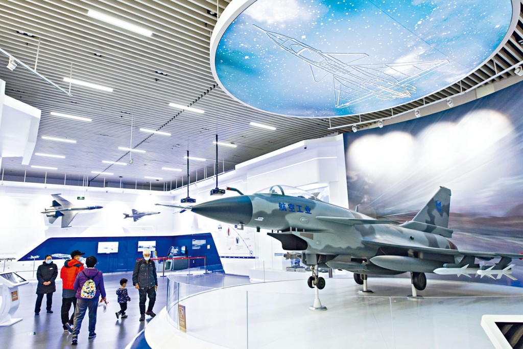 (星島日報報道)昨日十一月十一日,是解放軍空軍成立七十二周年紀念日。據台灣軍方表示,昨晨有四批解放軍戰機出現在台灣西南空域,台灣需出動戰機戒備。圖為北京民眾昨日在中國人民革命軍事博物館參觀解放軍空軍裝備展示。