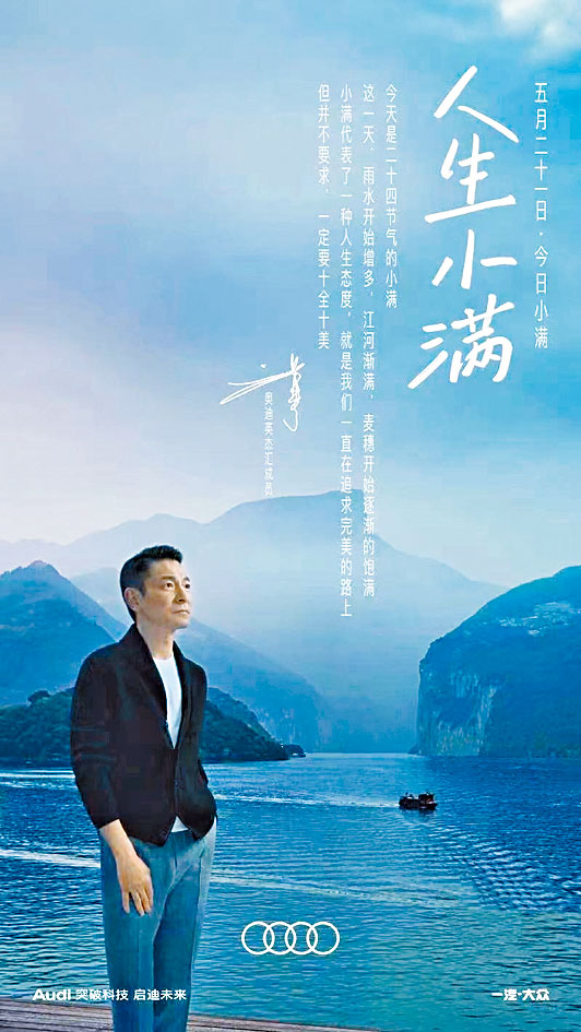 上周六(二十一日)是中國二十四節氣中的小滿。當天,奧迪汽車當日發布了劉德華代言的廣告影片《人生小滿》,引發大量關注。不料,視頻博主「北大滿哥」直指該廣告文案抄襲。