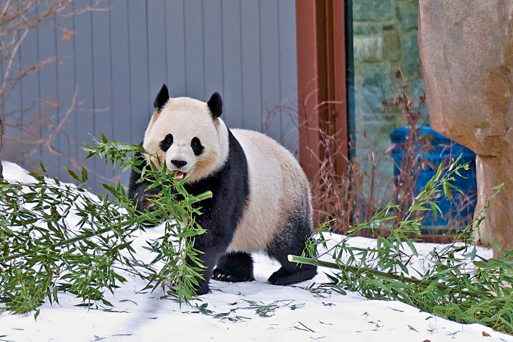 位於華盛頓的史密森學會國家動物園前日舉行大熊貓館開館儀式,抵美3個月的中國大熊貓「寶力」和「青寶」首次正式與公眾見面。為迎接兩位寶貝,園方對熊貓館進行裝修升級,包括製作群山壁畫、新添熊貓爬架等。