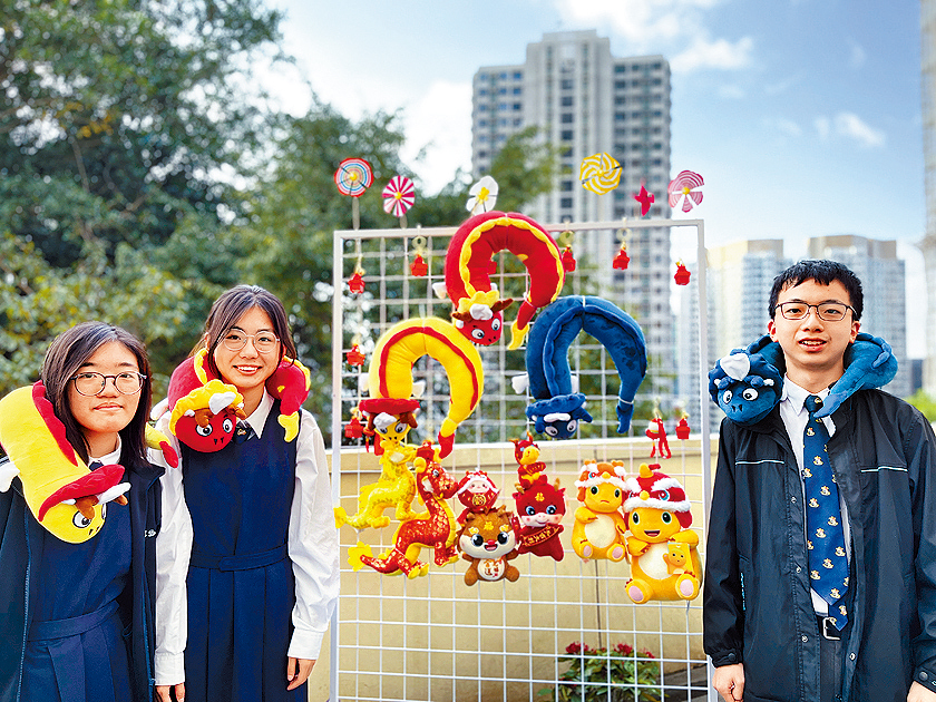 維園年宵市場周日起一連7天舉行,繼2019年後今年重設乾貨攤檔,面對市道不明朗、港人北上消費,張祝珊英文中學學生卻首次投下兩個相連的乾貨攤檔,售賣由學生設計的「龍年開運」產品(見圖)。副校長司徒雪萍認為,目前市況不會影響港人行年宵的「行大運」心態,不擔心銷情。