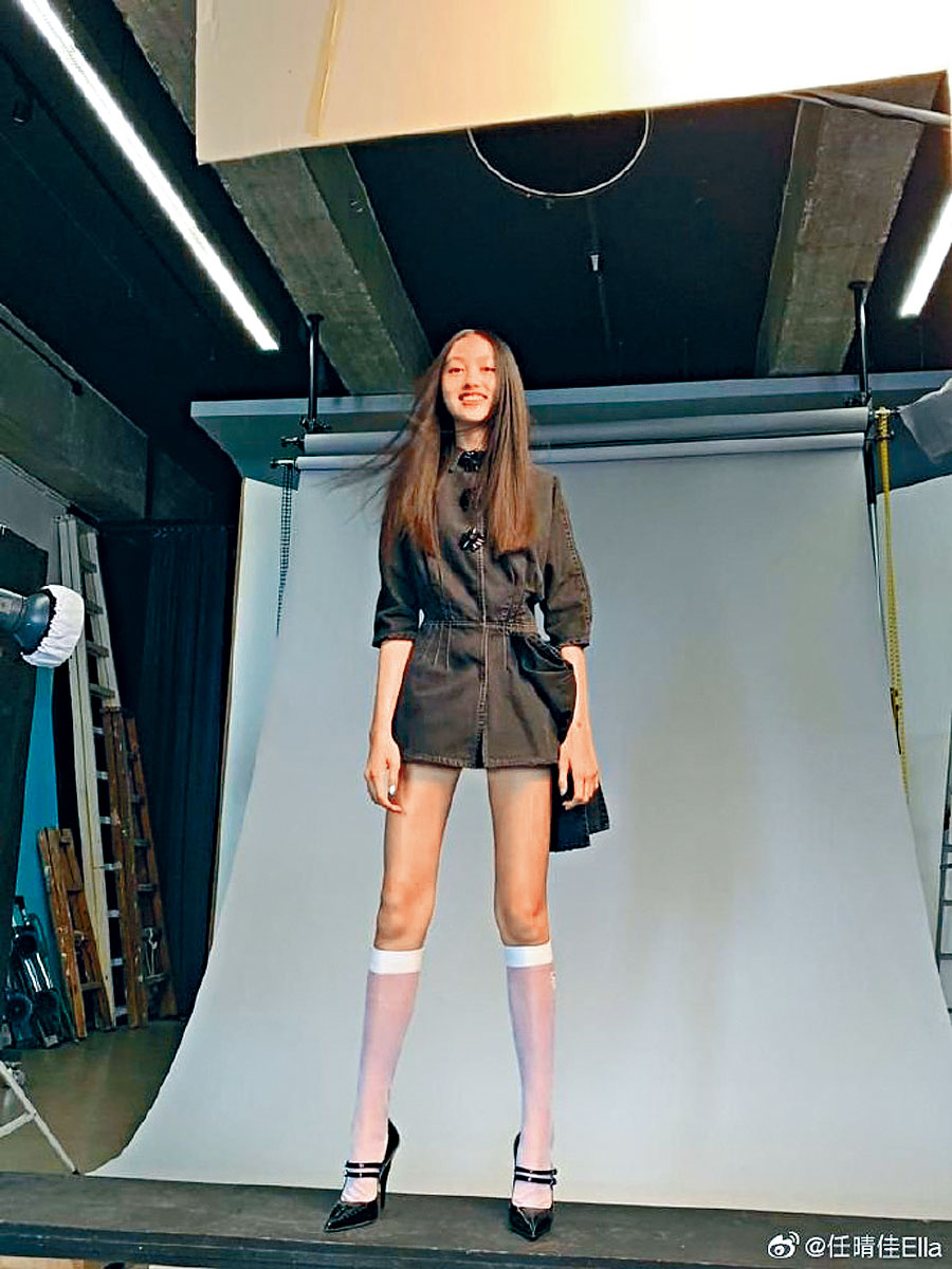 不過今年琦琦終於讓已年屆14歲的Ella嘗試為時尚雜誌拍硬照,近日Ella已進攻微博,並跟粉絲分享自己為雜誌拍照的花絮,相中穿白色及膝絲襪襯3吋高跟鞋,當然少不了晒招牌長腿。