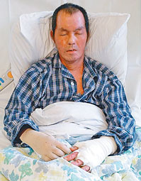 (星島日報報道)在馬鞍山被淋易燃液體縱火嚴重燒傷的五十七歲「祥哥」(見圖),留醫近兩個月情況雖有好轉,近日傷口亦已瘉合,但病情反覆仍須留醫隔離病房以防感染,祥哥說現時最辛苦是全身傷口非常痕癢,好像被很多蟲不斷咬,難以入睡,正排期做第四次植皮手術。