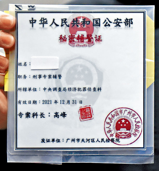 騙徒其後要求清查資產及收取保證金的理由,要求受害人將所有存款,甚至將物業按揭將錢存入安全帳戶;騙徒會安排持有偽造「特務」證件(見圖)的同黨上門收款,或帶受害人到銀行匯款;詐騙過程由數天至數個月不等,至受害人發現受騙時,戶口存款已全被轉走。