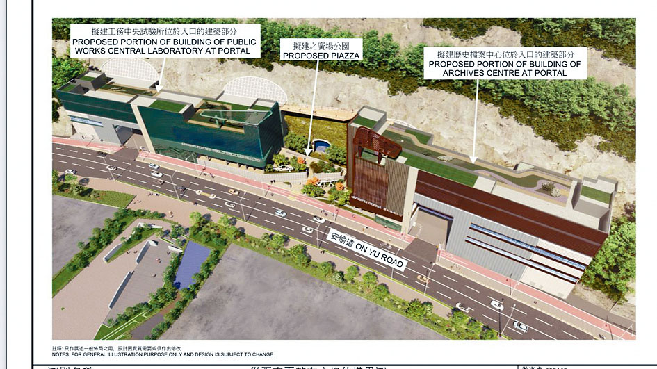 發展局向委員會提交的文件顯示,重置工務中央試驗所約需23.7億元,將可釋出九龍灣現址用地,連同毗鄰的一幅政府土地,可作房屋和海濱休憩用地發展;而岩洞興建歷史檔案中心,估計所需費用約34.2億元,可提供永久儲存歷史檔案的空間,以應付與日俱增的檔案儲存需求。當局在工程計畫內,亦會興建廣場公園和天台花園,供公眾使用。