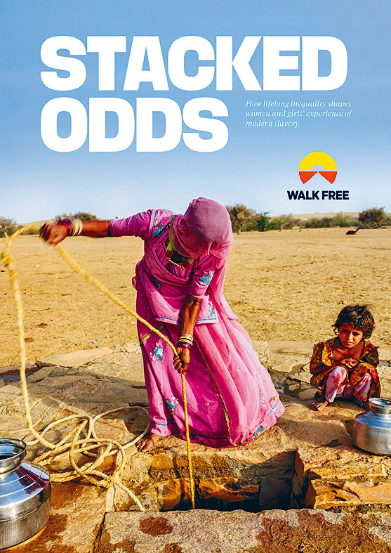 (星島日報報道)根據最新報告的統計,全球有二千九百萬婦女為現代奴隸的受害者,比澳洲的人口還多,她們遭受逼害的方式包括被逼工、逼婚,淪為債奴與家奴等。人權團體「自由行基金會」(Walk Free Foundation)聯合創辦人佛瑞斯特上周五稱,這意味着如今每一百三十個婦女中,就有一個陷入現代奴隸的處境。佛瑞斯特在聯合國記者會上說:「實情是當今生活在奴隸制中的人,比人類史上任何時候都還要多。」她說,自由行基金會定義現代奴隸制度,即「系統性的剝奪個人自由,也就是某人為了個人或財務利益剝削他人」。根據這份名為「劣勢」(Stacked Odds)的報告(圖),強逼性剝削受害者中婦女佔百分之九十九,所有逼婚受害者中婦女佔了百分之八十四。佛瑞斯特表示,自由行基金會與聯合國正共同發起要求消弭現代奴隸的全球行動,呼籲終結一百三十六個國家尚未定罪的童婚與逼婚。