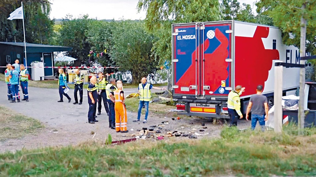 (星島日報報道)荷蘭一貨車撞向一批正在燒烤的人群,造成六人死亡、七人受傷,其中一人傷勢嚴重。三男三女死者年齡由二十八至七十五歲。該輛在西班牙註冊的貨車在上周六傍晚約六時,在鹿特丹市以南約三十公里處,偏離一條堤岸道路,撞上民眾。警方周日表示,肇事貨車原本停在村莊的堤壩上,突然啟動並駛離堤壩,衝入正在燒烤聚會的人群,造成多人死傷。肇事司機是一名四十六歲的西班牙籍男子,目前已被逮捕,排除酒駕因素,事件仍在調查。司機的僱主西班牙運輸公司El Mosca聲稱,案發時司機嘗試防止貨車與一輛麵包車相撞,才駛離堤壩。