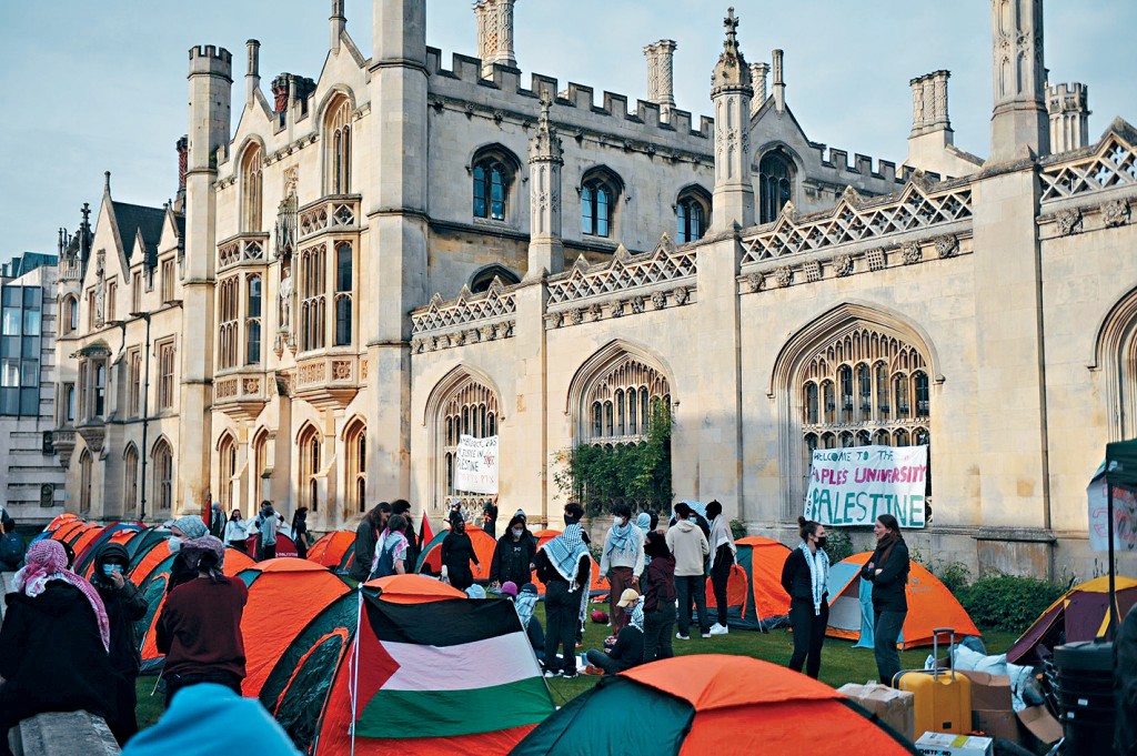 支持巴勒斯坦的學生和社運人士,在英國兩大頂尖名校牛津大學和劍橋大學設立示威營地,誓言在他們的要求得到滿足之前「不會搬走」。他們要求大學切斷與以色列的財務聯繫。