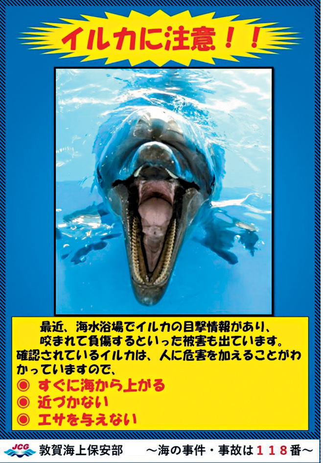日本福井縣近期持續發生海豚傷人事件,當地海灘已經警告民眾不要隨意靠近海豚(見圖),以免發生意外。據報一條樽鼻海豚因試圖強行與人類近距離接觸,而造成各種傷害,上星期就發生兩次攻擊,導致一名男子失去指尖,引發恐慌。當局已派出水上摩托艇在繁忙的海灘上巡邏,提防這條性飢渴的海豚。該海豚性騷擾人類行為讓專家們大感意外,牠在2022年至少進行21次攻擊,去年有9次,今年夏天則高達18次。一名62歲潛水教練是受害者,受訪時說:「牠不停地推我的臀部,很不舒服。」