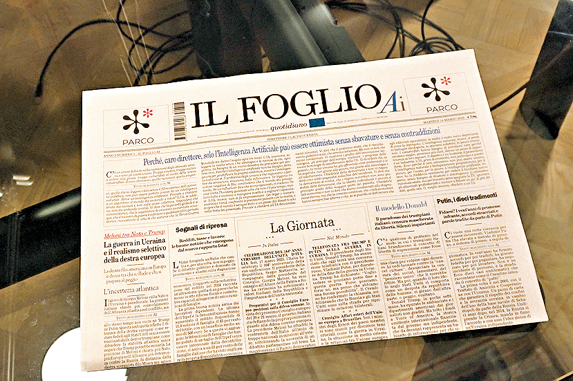 意大利《頁報》(Il Foglio)日前發行全球首份由「人工智能」(AI)產出內容的報紙,引發震撼。總編輯塞拉沙邀請駐意外媒記者參訪並舉行座談。