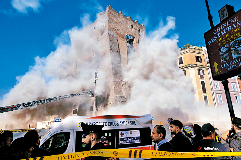 羅馬市中心古蹟塔樓驚悚崩塌 維修工人重傷