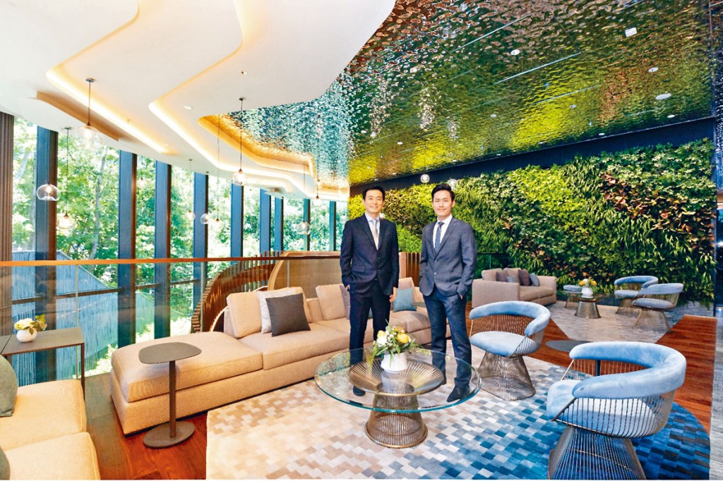 (星島日報報道)由萬科發展的上源,目前已接近現樓,昨日就公布其住客會所的面貌,萬科香港執行董事周銘禧(圖左,旁為梁啟安)表示,該盤住客會所「Club Le Pont」,面積逾3.2萬方呎,配備近20項動靜設施,設計亦特別透過大型落地玻璃,將屋苑範圍內的自然景致投射入室內,融合室內與戶外空間。