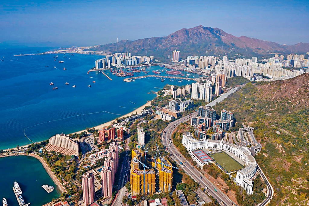 (星島日報報道)香港小輪及帝國集團合作發展、恒基負責銷售的屯門帝御.嵐天,發展商昨特別安排傳媒,乘坐直升機俯瞰項目附近地理環境(見圖),恒基代理營業(一)部總經理林達民表示,項目位處青山公路青山灣段,後方有全港最多郊遊徑的大欖郊野公園及九逕山,山巒面積逾5400公頃,前方有「18咪半」之稱的黃金泳灘,加上沿海岸線的新咖啡灣、舊咖啡灣、加多利灣及青山灣組成的「五灣一脈」風光,獨特地理環境於高空一覽無遺。