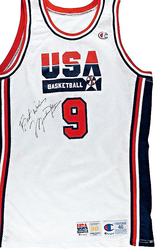(星島日報報道)九二年出戰巴塞隆拿奧運男子籃球賽的美國夢幻一隊星光熠熠,陣客包括魔術手莊遜、小布特和米高佐敦。近日,佐敦代表夢幻一隊時所穿的親筆簽名球衣被拍賣,並以廿一萬六千美元(約一百六十七萬港元)成交。