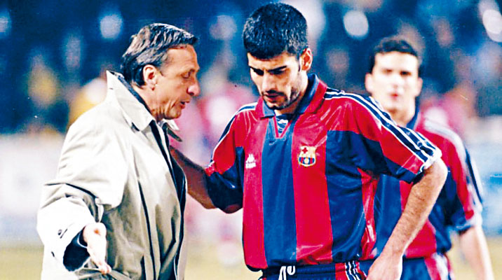 (星島日報報道)以全能足球為理念的巴塞名帥告魯夫,一手將哥迪奧拿由預備組提拔上一隊(圖),成為夢幻一隊要員,後者坦言告魯夫是傳授自己最多知識的師傅。