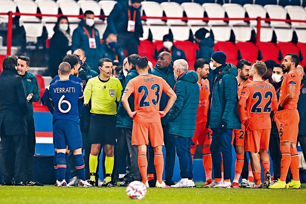 簡評:歐聯H組最後一輪,巴黎聖日耳門主場對巴沙克舒希。客隊助教韋保向第四球證哥迪斯古投訴,後者向球證赫迪根匯報時用種族歧視字眼形容對方,韋保怒氣沖沖,兩軍拉隊離場導致賽事腰斬。