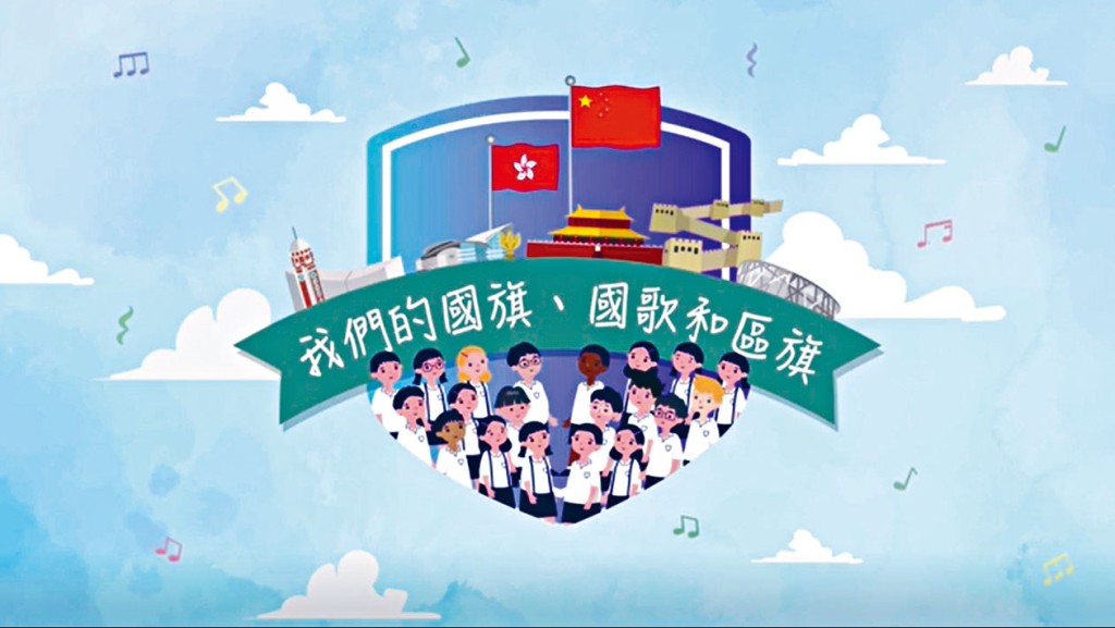 《我們的國旗、國歌和區旗》有聲故事繪本,由教育局課程發展處製作,以兩名小學生在國慶日周會前的對話為主軸,擔任升旗隊成員的學生,向同學介紹國旗、國歌與區旗,均是國家的象徵,任何公民不僅是中國人,外籍人士都要尊重;又提到升旗禮時,出席者需要肅立,面向旗杆,舉止莊重,並按標準曲譜唱出,「不可以亂改或亂唱」,同時亦提到運動會、結業禮等校內場合,均會升國旗和唱國歌。