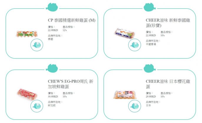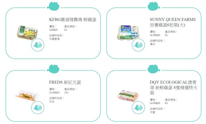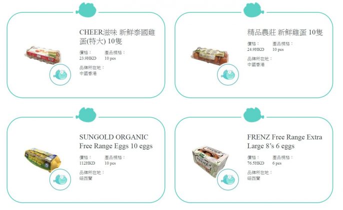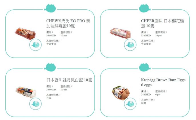 2020年最新測試結果(第二期)結果發現,12款雞蛋樣本中,有8款達「品質卓越(綠魚)」,其餘4款達「品質合格(黃魚)」。當中獲評為「品質卓越(綠魚)」的雞蛋樣本如下: