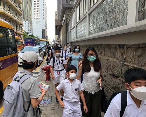 德信學校學生七時許陸續返抵學校,有教職員在校門迎接學生,記者曾上前就事件作查詢,有教師表示「學校沒有回應」。
