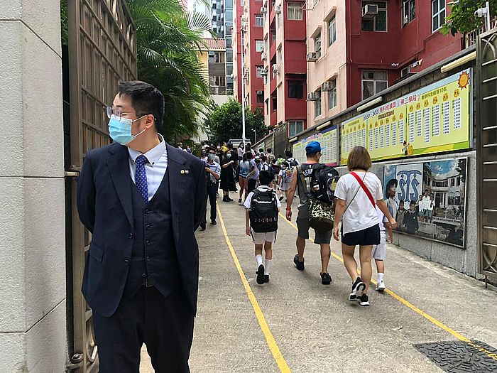 接送兒子上學的吳先生表示,選校原因為看中郭校長為學校增添不少動力,對他被停職感到「有點不開心和失望」,盼校方交代原因。談到學校每年六月舉辦「六四事件」祈禱會,吳先生則表示不知道,「他很少向家長提及政治」。