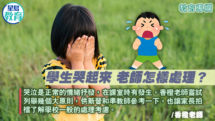 新晉老師來訊向香橙老師查詢:「課堂中如有學生哭起來,老師應怎樣處理?」哭泣是正常的情緒抒發,在課室時有發生,香橙老師嘗試列舉幾個大原則,供新晉和準教師參考一下,也讓家長拍檔了解學校一般的處理考慮。