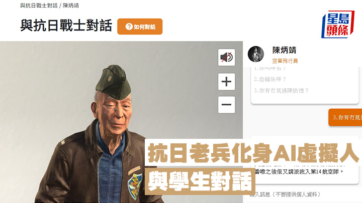 虛擬人會按照抗日老兵的經歷,以語音和文字回答問題。