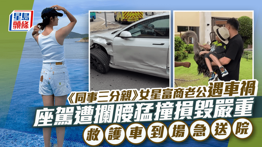 《同事三分親》女星富商老公尖沙咀大炒車 Tesla座駕遭攔腰猛撞損毀嚴重 救護車趕到急送院