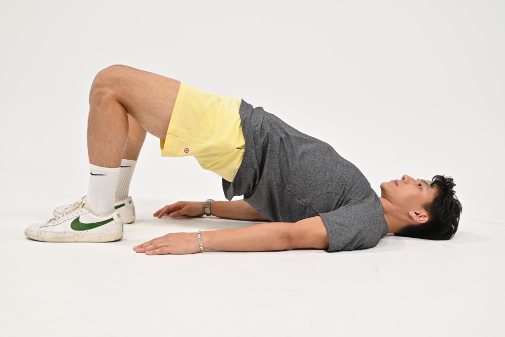 用大腿和臀部發力令身體成為斜直線,腰保持直線,能有效鍛鍊腿部和臀部。慢慢重複動作,每日三組,每組十次。