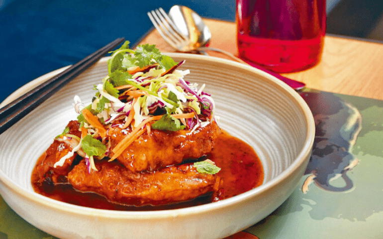 餐牌中大部分菜式都是香港人最喜歡的,像是炒金邊粉、炸魚餅、豬肉碎生菜包及泰式蛋咖喱等,當中亦有不少加入現代烹調技術的慢煮系列。融合了西餐低溫慢煮方法的羅望子醬慢煮豬肋骨,以新鮮羅望子調成醬汁,加入豬肋骨後用攝氏六十八度慢煮二十四小時,羅望子的酸香中和了豬肋骨的油脂,肋骨連肉也煮得入味鬆軟,吃起來又香又腍。
