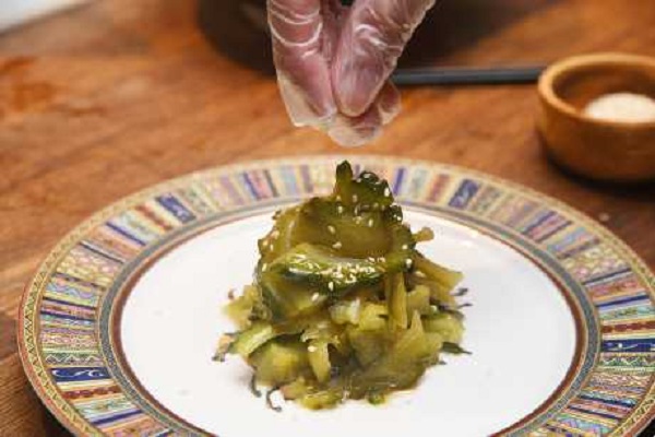 4.涼瓜上碟,加麻油和灑上芝麻。