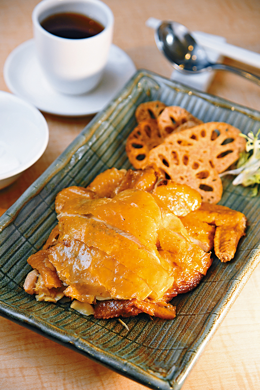 不吃套餐也有許多必試的散點招牌菜,如秘製冰梅陳皮骨及鹽香雞。前者選用腩排部位,貪其肉多不肥膩。用蔬菜汁醃腩排三十分鐘後調味,炸脆再拌入以酸梅、陳皮及冰糖調製的醬汁,酸甜有序,滋味可口。肉汁豐盛的鹽香雞,均選重約三斤的三黃雞,用調味料及粗鹽醃過,再經過沖洗鹽分、汆水、風乾、上油皮等步驟,可謂慢工出細活,鹹香惹味。