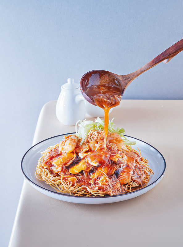 推介滬上兩面黃(見圖,$88),是上海、蘇浙等地經典麵食,製作過程講究,大廚將白麵蒸熟後過冷河,以慢火烘至表層酥脆焦香,再淋上蝦、魚、豬、雞及冬菇等配料品嘗。另一道即叫即做的爆汁鮮蝦韭菜餡餅($42/3件),麵團逐次加水搓揉,再用木棍壓至薄身,包上鮮蝦和韭菜餡料,搓成餅狀,以慢火煎至兩面黃色,一咬即有爆汁效果。