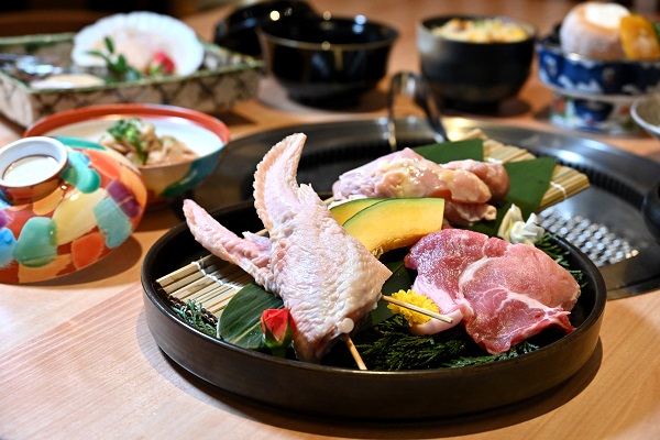 和牛廚師發辦以外,還有主要以雞肉與黑豚肉組成的「鳥亭」燒肉套餐。雞肉是來自日本德島縣的阿波尾雞腿和雞中翼,這名貴的雞種由當地畜產研究所花了十年時間研發而成,是日本著名的走地雞,以自然放養方法餵飼和長大,肉質彈牙有咬口,肉味香濃、脂肪極少,適合燒烤來吃,分外皮脆肉甜。