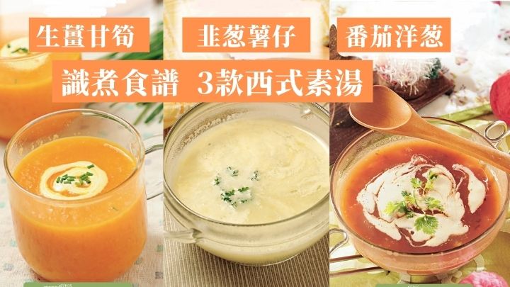 飯前喝一碗湯,可打開胃口。天氣仍悶熱,不想喝老火湯的話,清爽西式素湯是好選擇,今日教大家炮製三款美味素湯,材料就是常用的番茄、薯仔、甘筍,烹法簡單。