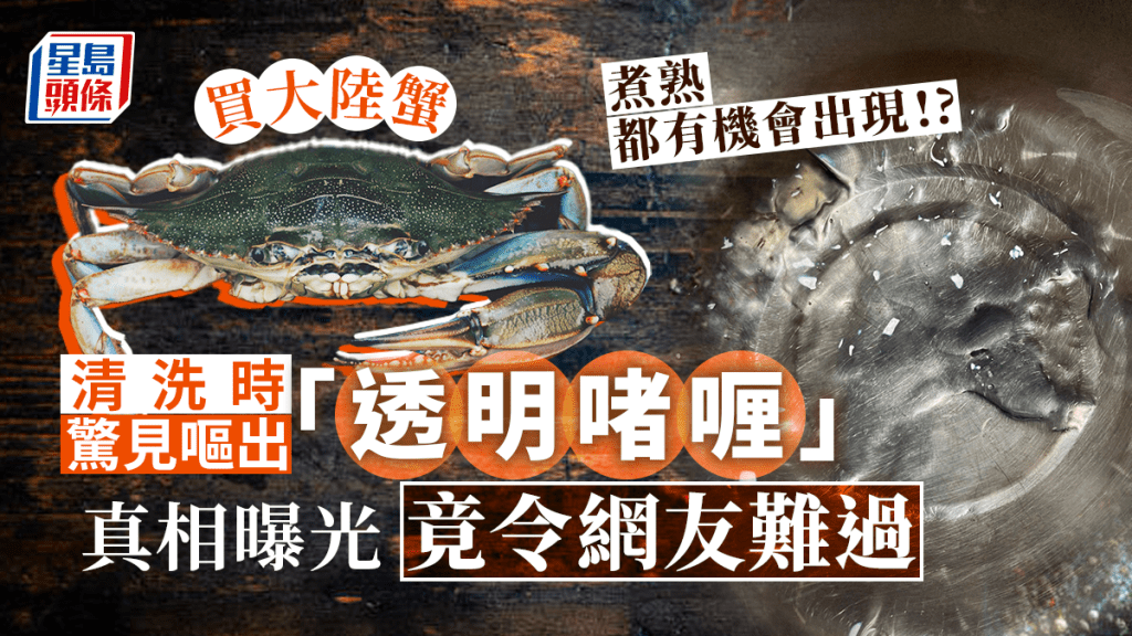 微涼的秋季最適合吃蟹,這個時節的蟹特別肥美多膏,所以很多人都會選購一些蟹回家烹煮。一名暖心媽媽亦買了兩隻螃蟹,處理乾淨之後放在盤中靜置,想着小朋友放學後便能大快朵頤。怎料放了幾小時,這名媽媽發現盤中居然出現了像果凍一般的透明膠質,她擔心蟹有食用安全的問題,故即刻求助神通廣大的網民:「請問這個有毒嗎?」到底蟹身流出「透明果凍」是甚麼原因?除了「透明果凍」,之前網友在蒸熟長腳蟹後在裏面發現「豆腐花」又是怎麼一回事?